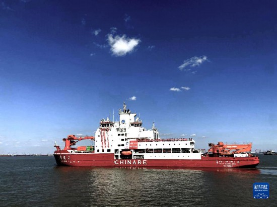 2020年11月10日,中國(guó)第37次南極科學(xué)考察隊(duì)乘坐“雪龍2”號(hào)極地科考破冰船從上海起航,奔赴南極執(zhí)行科學(xué)考察任務(wù),這是“雪龍2”號(hào)極地科考破冰船駛離碼頭。新華社發(fā)(中國(guó)極地研究中心供圖)